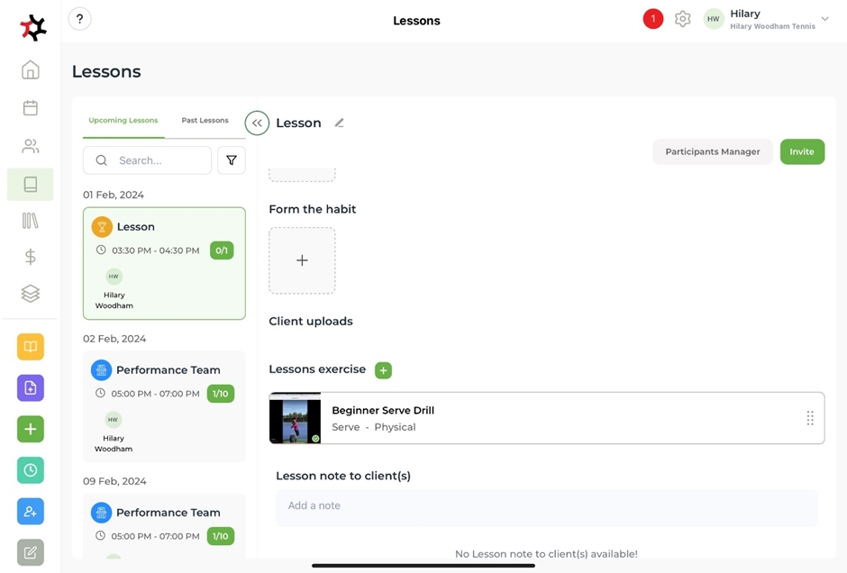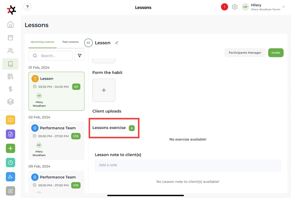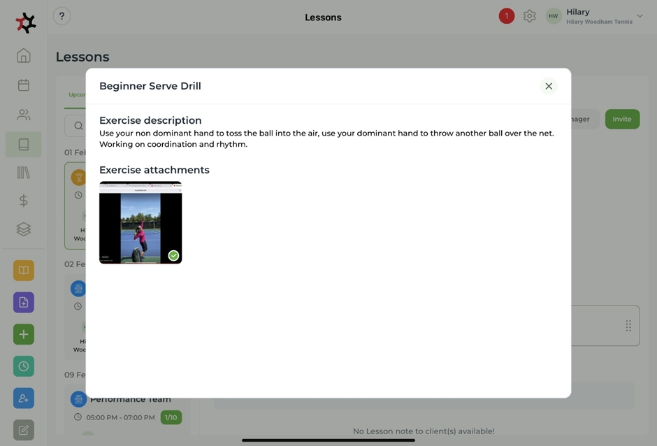 Add exercises to your lessons for your athletes to view outside of the lesson.