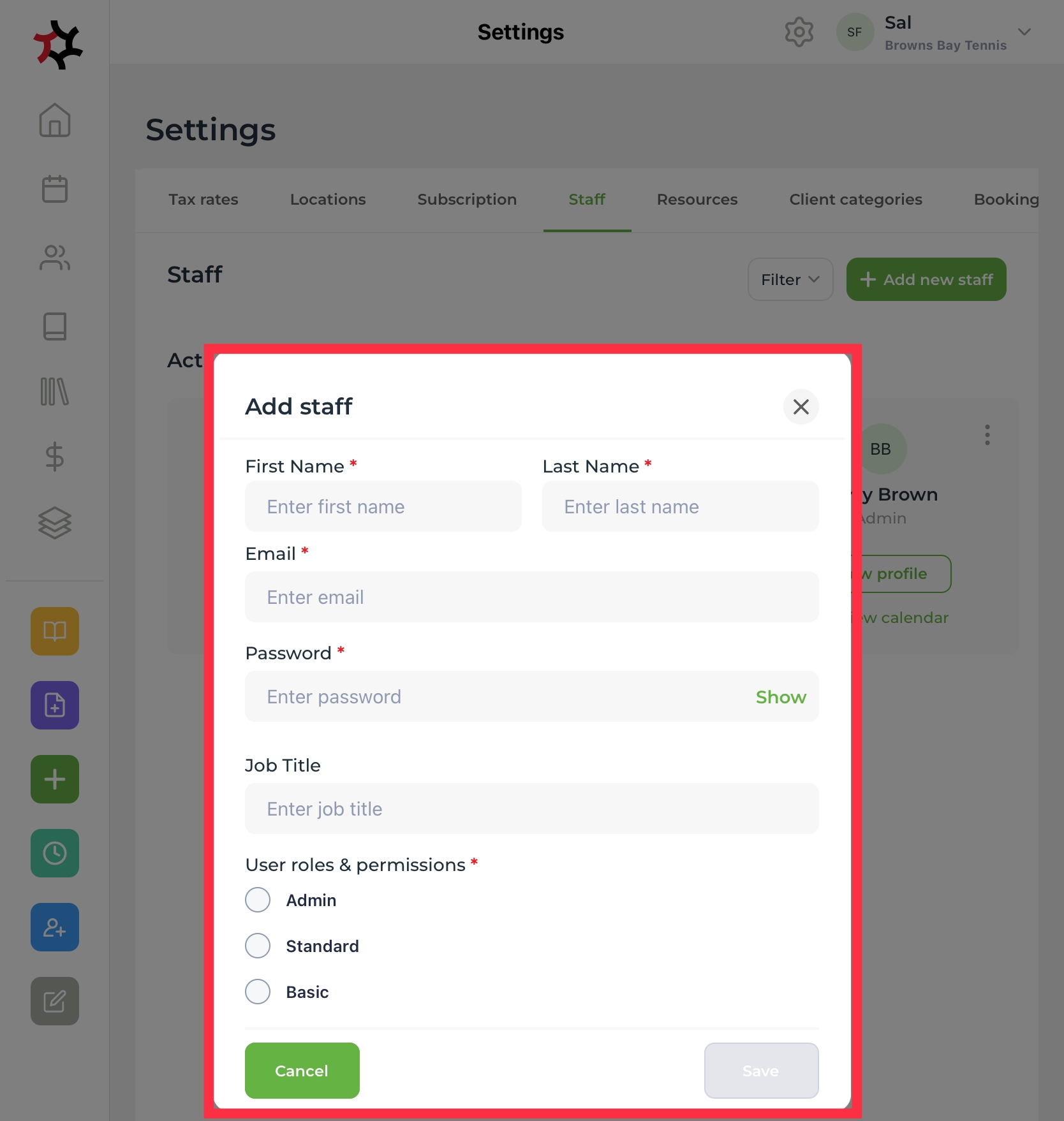 When adding a new staff member you can allocate their user role. This will determine their responsibility level.
