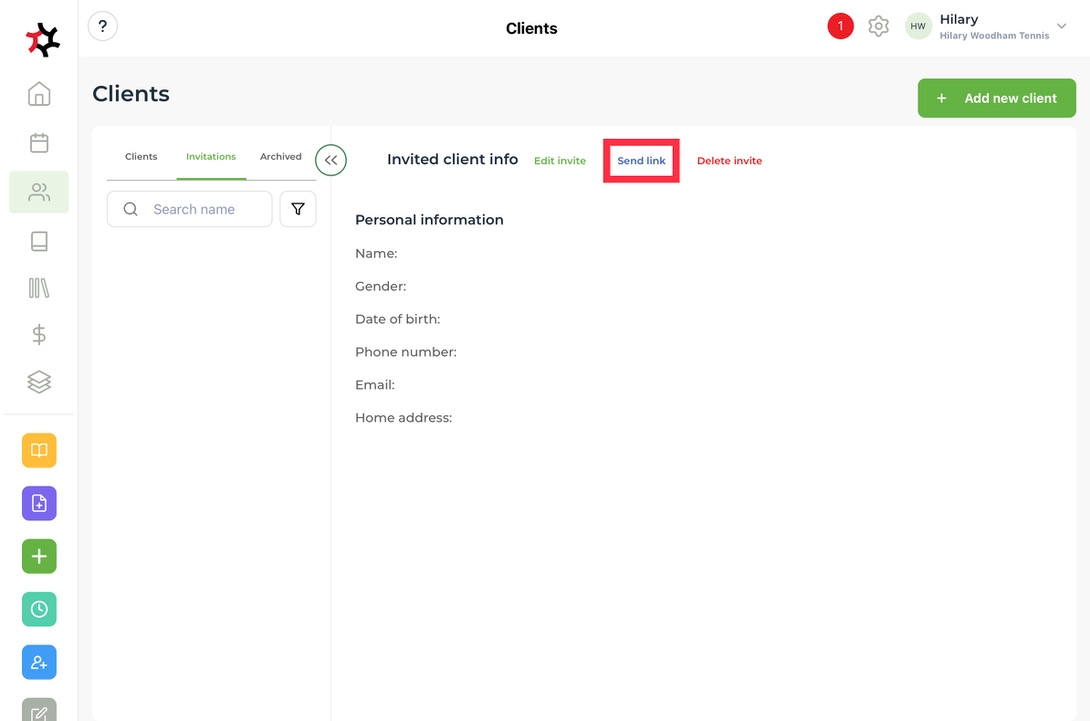 Once you have added a new client you can invite them to book lessons via your online booking page by selecting Send link.